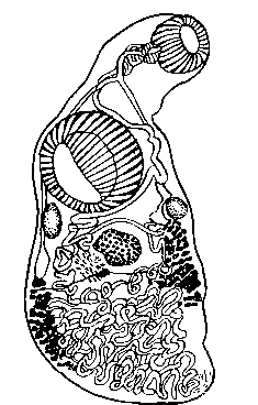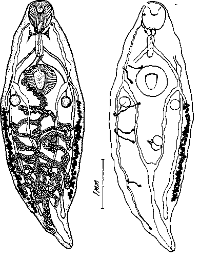 Кишечные стволы достаточно широкие, несколько извилистые, проходят дорзально по отношению к латеральным краям семенников и оканчиваются на расстоянии около 1/3 расстояния от концов желточников до заднего конца тела. Экскреторная система построена, как у С. ecteridorum, за исключением того, что общие собирательные канальцы проходят вентрально по отношению к внутренним краям семенников и они (канальцы) разделяются на главные собирательные канальцы у вентро-медиальных краев мужских органов.