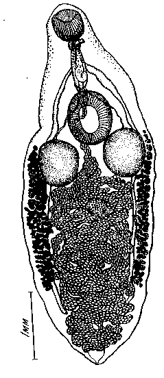 Описание вида (по Denton, Byrd, 1951). Тело вытянутое, довольно толстое, мышечное, достигает 4,27—5,47 мм в длину и 1,40—2,04 мм в ширину, самое широкое место — в области между семенниками и яичником. Кутикула толстая, продольно исчерченная и тонко сморщенная поперечно, имеет втягивающиеся чувствительные папиллы, которые видны только на краях тела перед брюшной присоской. Ротовая присоска мощномышечная, субтерминальная; с дорзальной стороны имеется довольно заметный выступ, похожий на губу; диаметр присоски равен 0,30—0,50 мм.