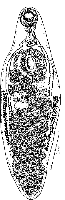 Материал состоял из 25 экз., добытых от одного стрижа (самки). При вскрытии растянутого трематодами желчного пузыря оказалось, что покидая его, они оставляли после себя своеобразные выпячивания на наружной стенке пузыря. Это были участки слизистой оболочки пузыря, захваченные и зажатые брюшными присосками червей.