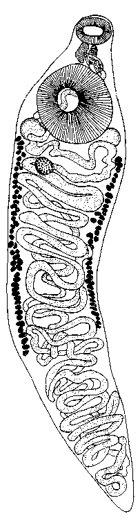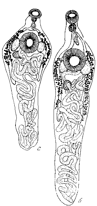 У исследованных землероек желчные протоки и пузырь были забиты этими трематодами; у одной их оказалось 44, у второй 13.