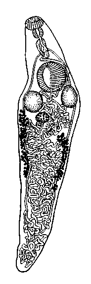 Яичник вытянутый, эллиптической формы, достигает 0,48 X 0,20 мы. Он расположен вправо от медианной линии и находится несколько впереди середины тела.