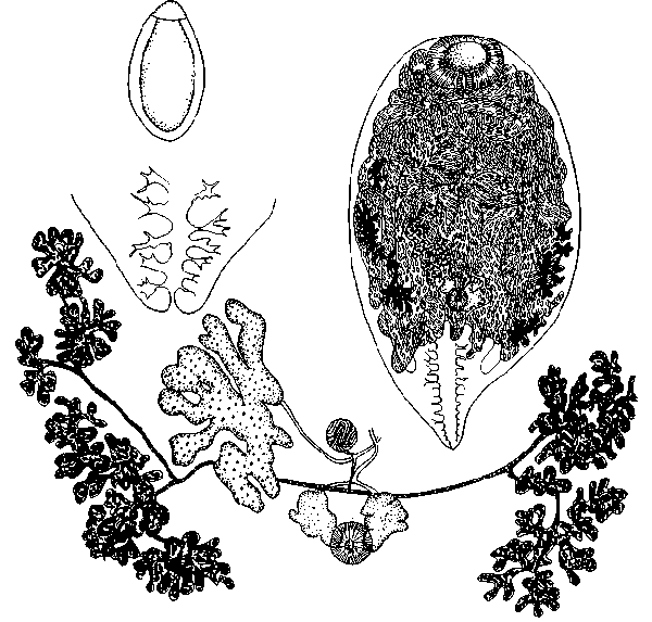 С каждой стороны тела желточники занимают одну треть длины тела или несколько меньше. Многочисленные петли матки заполняют тело от его переднего конца почти до уровня концов кишечника. Яйца имеют на одном полюсе крышечку в виде выпуклого колпачка, на другом — очень маленький пуговкообразный придаток. Длина яйца 0,028—0,031 мм, ширина 0,015—0,017 мм. Экскреторный пузырь начинается от экскреторной поры на заднем конце тела, идет кпереди в виде постепенно расширяющегося канала, принимая по пути боковые сильно ветвящиеся канальца.