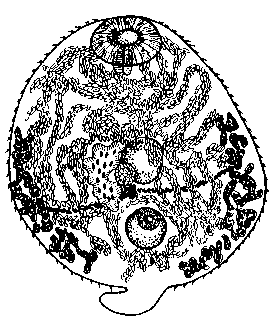 Один конец яйца более широкий, он имеет едва заметное сосочкообразное утолщение, другой — более узкий, снабжен колпачковидной крышечкой.