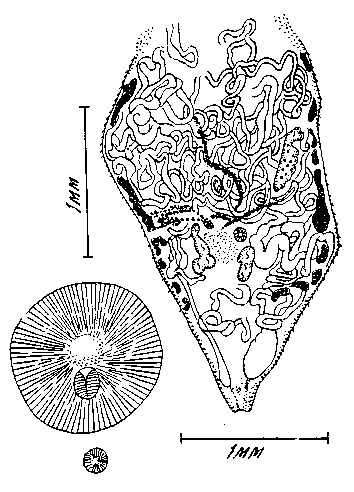 В месте прикрепления крышечки к яйцу оболочка имеет незначительные отвороты кнаружи. Молодые яйца имеют бледно-желтый цвет, а старые, вполне зрелые — коричневый. Экскреторная система характеризуется маленьким экскреторным пузырем, отходящим от экскреторной поры. Непарный канал распадается на два более мощных, которые идут кпереди параллельными стволами.