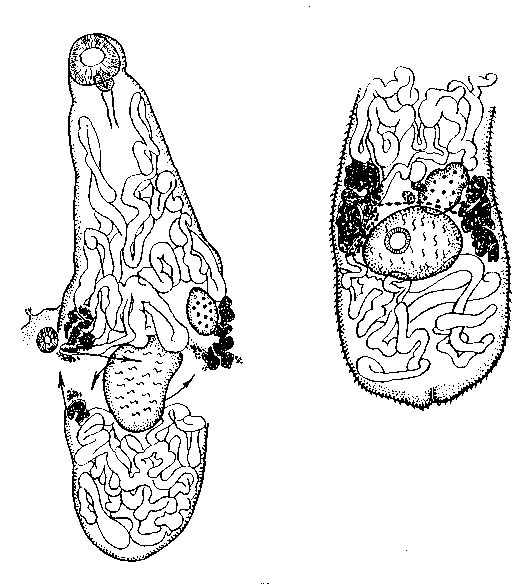 Что касается слияния семенников, то такая тенденция наблюдается у некоторых представителей рода Renicola, а именно у тех форм, у которых семенники налегают один на другой, причем отдельные лопасти одного соединяются с лопастями другого семенника (в противоположность тому, что мы наблюдаем у Neorenicola). Однако в результате такого частичного слияния никогда не формируется единый компактный семенник.