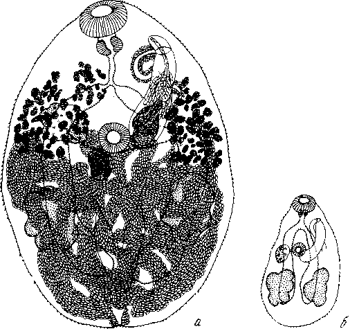 Pleurogenes cystolobatus Manter et Pritchard, 1964 из кишечника жабы (no Manter et Pritchard, 1964)