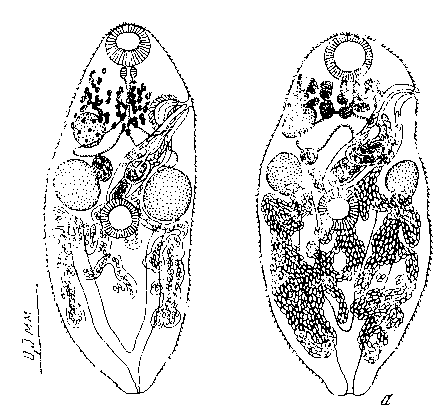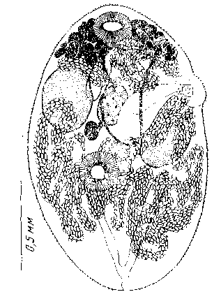 Pleurogenoides ifranensis Dollus, 1958 из кишечника Bufo bufo spinosus (Марокко, no Dollfus, 1958)