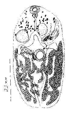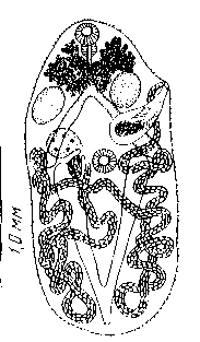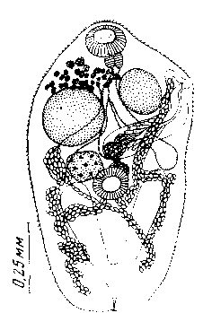 Prosotocus kashabia Kaw, 1943 из кишечника Rana cyanophlyctis (Индия, по Kaw, 1943)