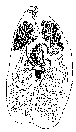 Langeronia provitellaria Sacks, 1952 из кишечника Rana pipiens (США, по Sacks, 1952)