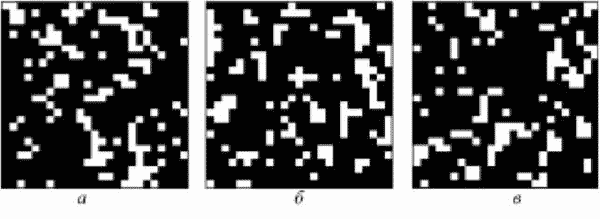 Картина резко меняется после 11-го шага моделирования, когда начинается естественный распад березняка, практически завершающийся к 14-му шагу. К этому времени уже хорошо развит подрост дуба, который начал активно развиваться после 10-го шага с момента начала перехода берез в сенильное состояние. Если бы моделировалась древесная синузия без экзогенных воздействий, то на его месте был бы клен. Он через 2-3 шага занял бы доминирующее положение и не терял его до конца исследуемого периода. Однако периодические отчуждения поддерживают численность клена на допустимом уровне, тем самым искусственно формируя многовидовой древостой. Это позволяет развиваться популяции дуба. В результате уже к 35-му шагу формируется структура, которая практически дальше не меняется. В качестве примера стационарной структуры рассмотрим расположение деревьев березы, дуба и клена 1-, 2- и 3-го ярусов на 75-м шаге моделирования. В полученном древостое дуб занимает ведущее положение и контролирует 35-40% территории, а клен и береза - по 10%. В сумме все виды в генеративном состоянии контролируют в среднем около 60% территории.