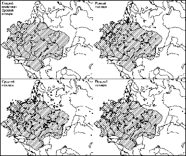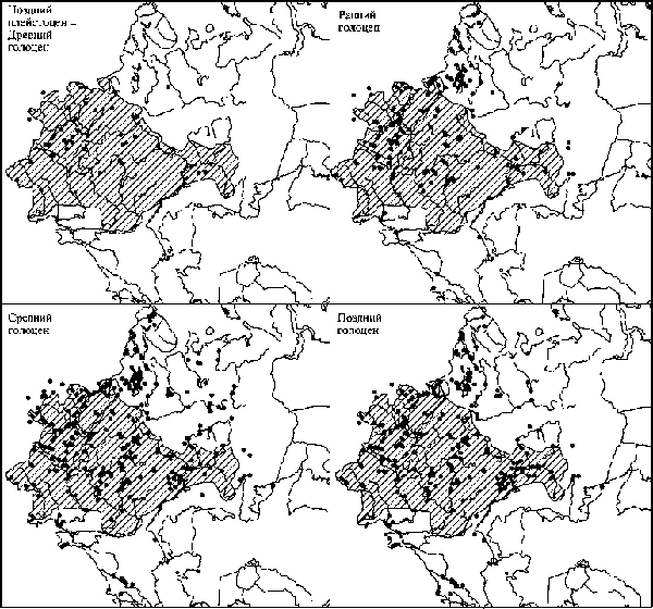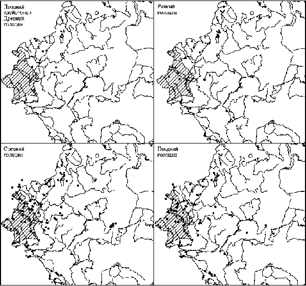 Лещина, в древнем голоцене пыльца её найдена в западной и центральной частях Восточной Европы: в Прибалтике, Белоруссии, на Украине, в России (Смоленской, Псковской, Новгородской, Архангельской, Нижегородской, Ярославской, Тверской, Московской, Тульской, Курской областях и в бассейне Северной Двины), а также в республике Татарстан. В раннем голоцене в несколько раз увеличивается число находок лещины; на севере ареал лещины доходит до Кольского полуострова, на востоке - до Печоры и Урала, на юге - до Приволжской возвышенности, Кавказа и Причерноморья. В среднем голоцене ареал лещины максимальный: находки ее пыльцы есть от побережья северных до южных морей, на востоке - до Тобола. В позднем голоцене пыльца не найдена на крайнем северо-востоке Восточной Европы (в республике Коми). Границы ареала за историческое время сместились в северном, восточном и южном направлениях.