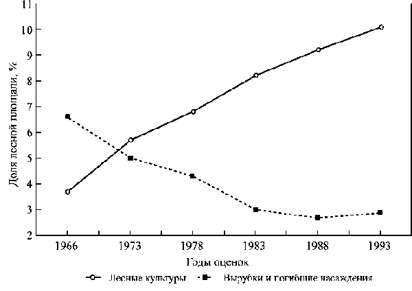 Рост интенсивности лесного хозяйства в России и расширение режима управления на значительные по площади лесные территории отмечено лишь в последние 40-50 лет.