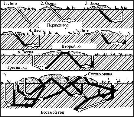 Схема развития сусликовины (по Полякову, 1961)