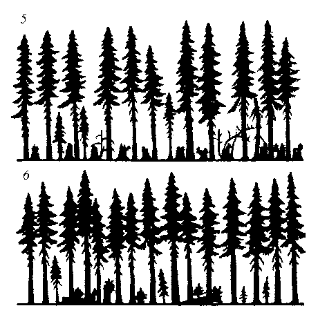 После вырубки условно климаксового сообщества широколесосечным способом с сохранением порубочных остатков и, частично, подроста (третий вариант рубок), процесс восстановления исходного типа сообщества идет существенно медленнее, чем при узколесосечном способе.