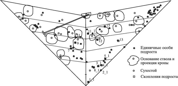 Расположение подроста хвойных видов, для которого проведен анализ роста в высоту за последние 15-25 лет.