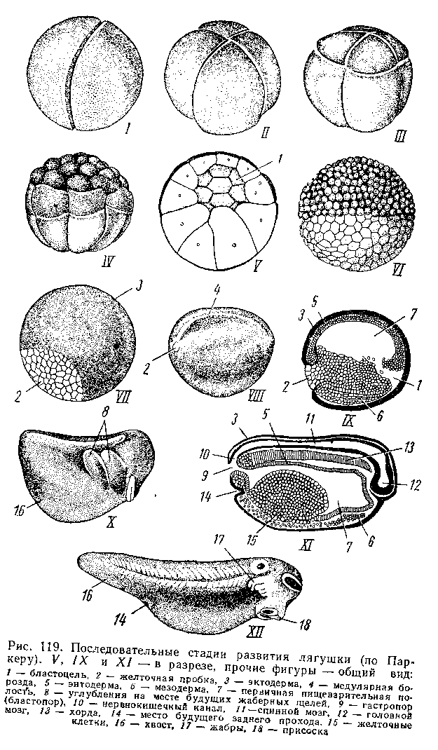 Развитие остромордой лягушки — Rana terrestris (по Банникову):