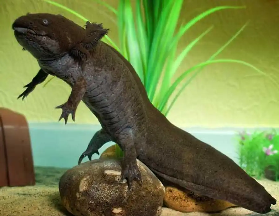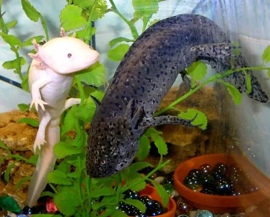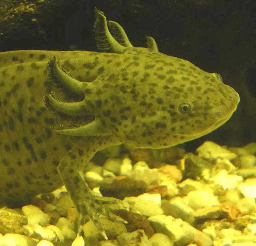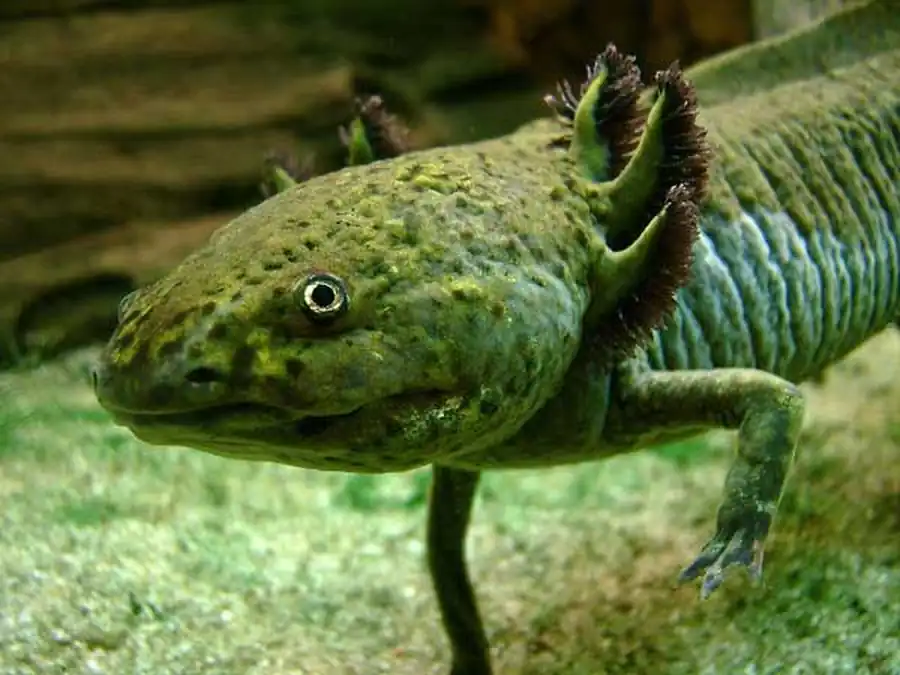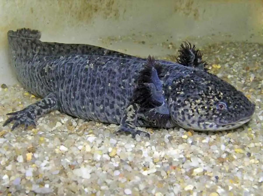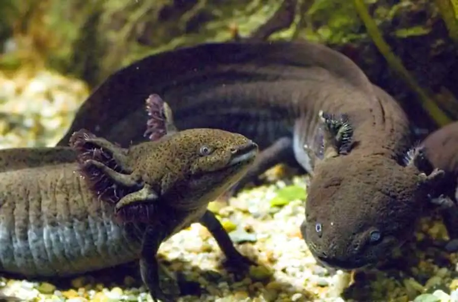 Если понизить уровень воды в аквариуме, то аксолотль вревратится во взрослую саламандру - у него уменьшатся внешние жабры и со временем совсем исчезнут. Если же уровень воды увеличить, внешние жабры снова появятся.