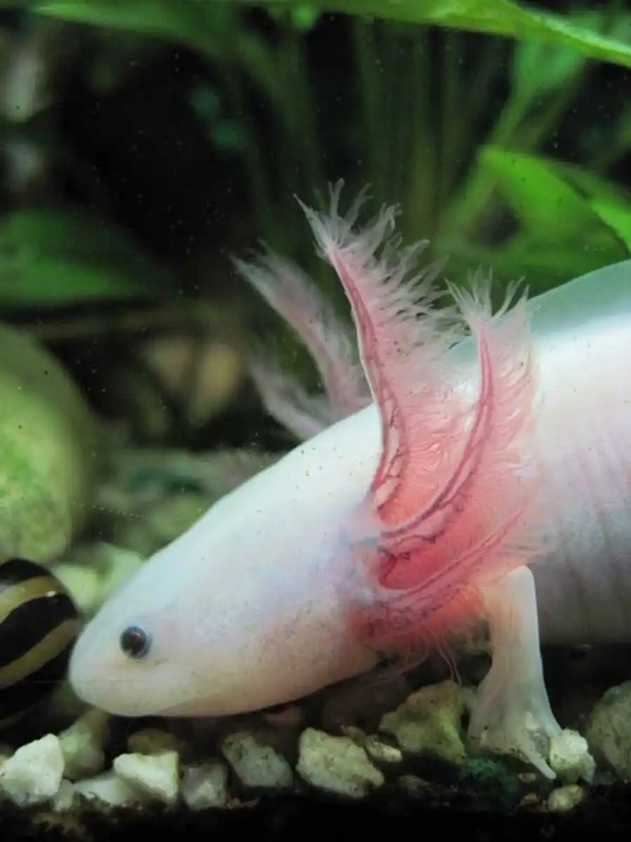 • Не селите в аквариум с аксолотлями улиток - они будут поедать водоросли, удаляющие нитраты из воды; могут попытаться грызть кожу аксолотлей, приводя к ее раздражению; а также могут быть источником различных заболеваний.