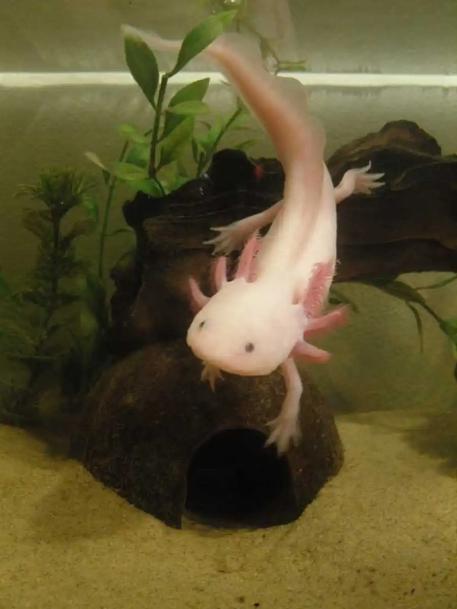 • Аксолотлей можно брать на руки и гладить, они при этом не нервничают.