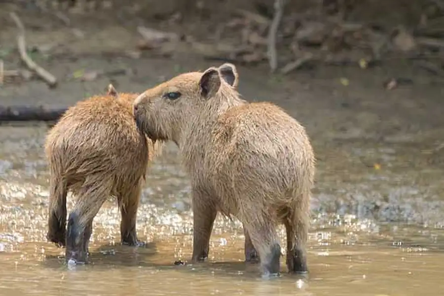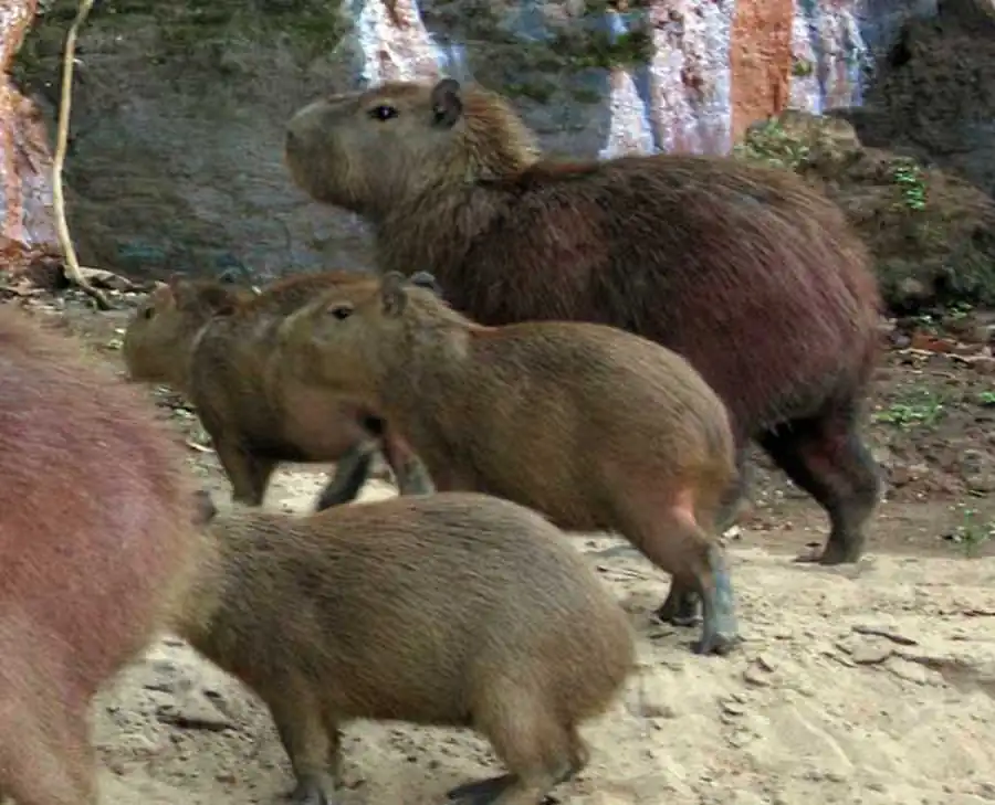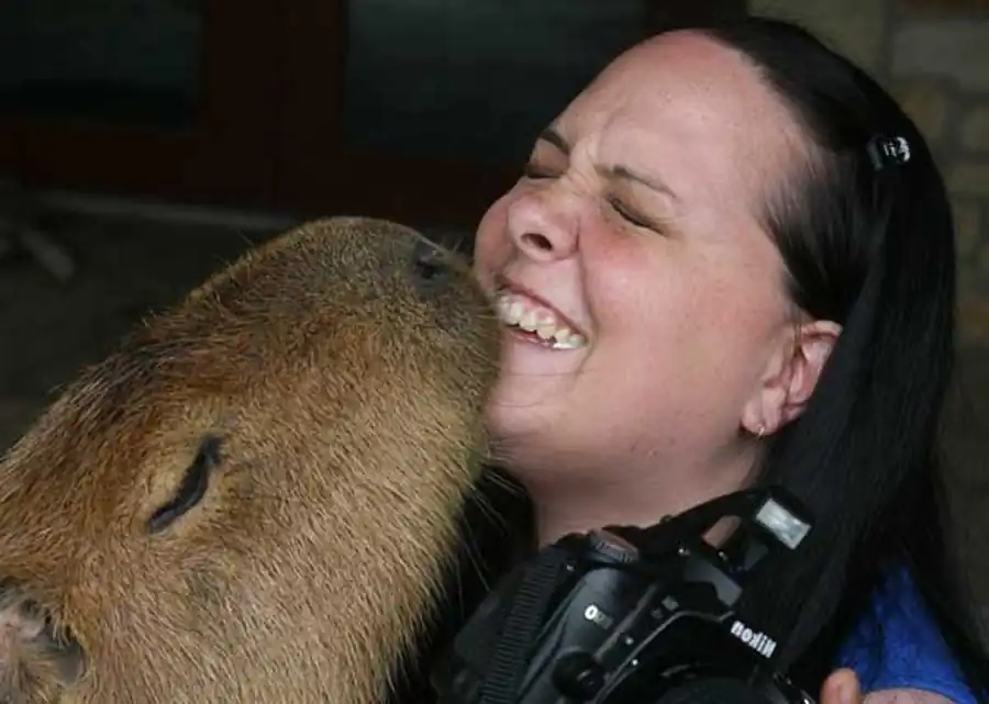А вот капибары к таким условиям приспособлены замечательно. Выяснилось, что они идеальны для того, чтобы разводить их на венесуэльских фермах, так как у них нет агрессии, процесс размножения и роста проходит быстро, ухаживать за ними просто. Даже взрослых водосвинок легко приручать, они послушные и ласковые, дружат с человеком и собаками.