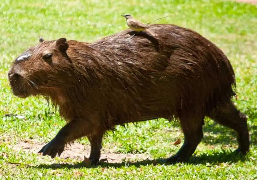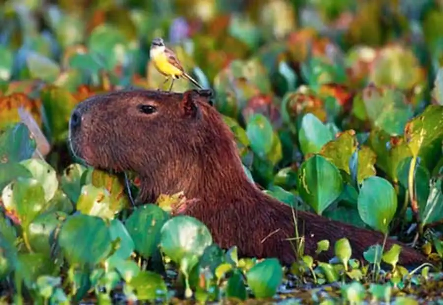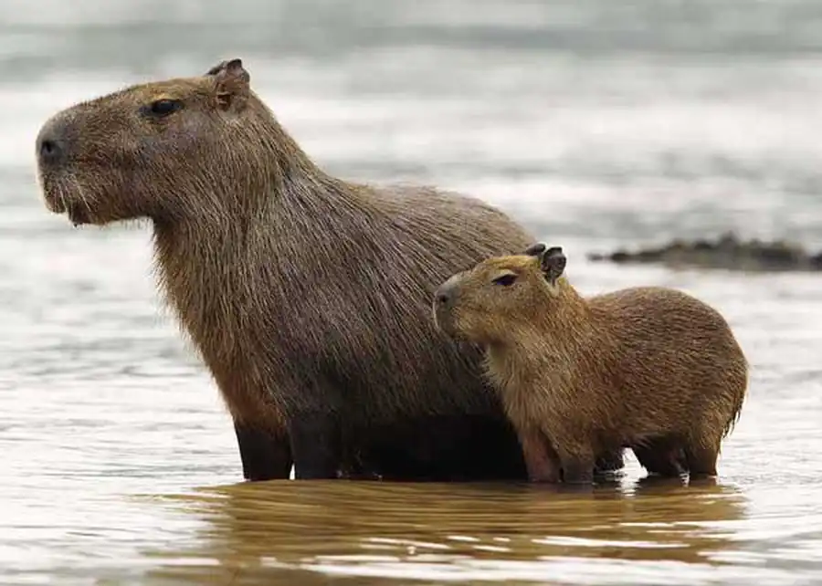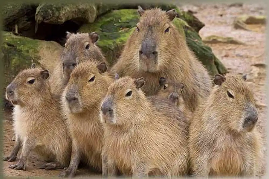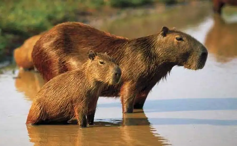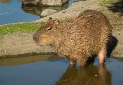 Капибара (водосвинка) - это травоядное полуводное млекопитающее, единственный представитель семейства водосвинковых. Является самым крупным современным грызуном. В переводе с языка индейцев гуарани «капибара» - это «господин трав». В странах Южной и Центральной Америки это животное называют по-разному - корпинчо, капугиа, капринчо, пончо.
