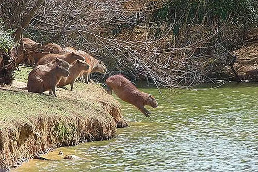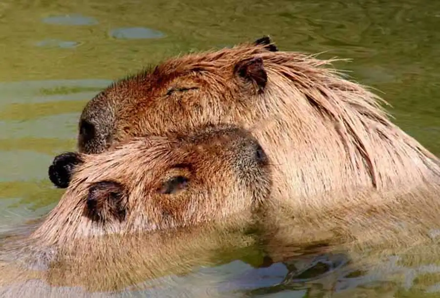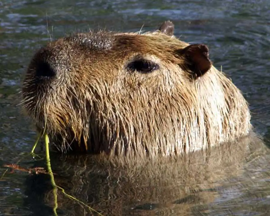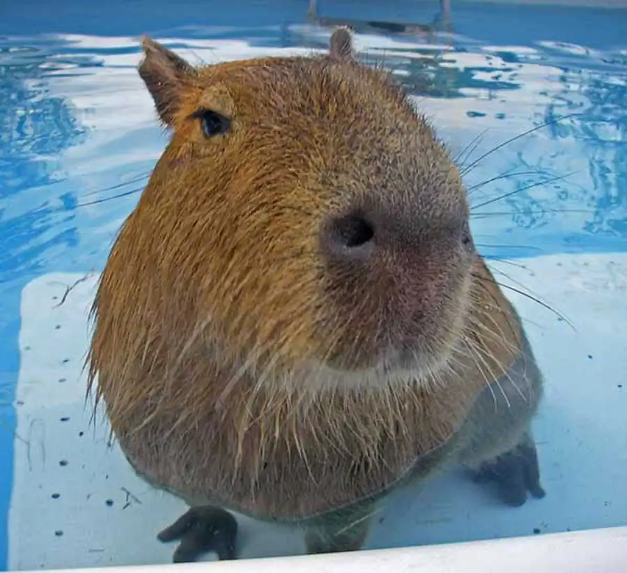 Капибара - отличный ныряльщик и пловец. Высоко расположенные на голове уши, глаза и ноздри позволяют удерживать их при плавании над водой.