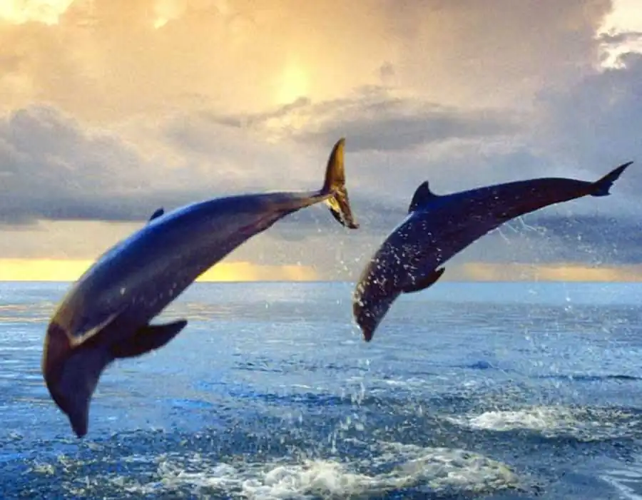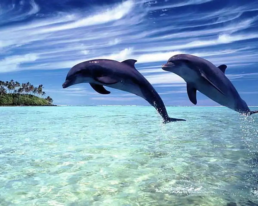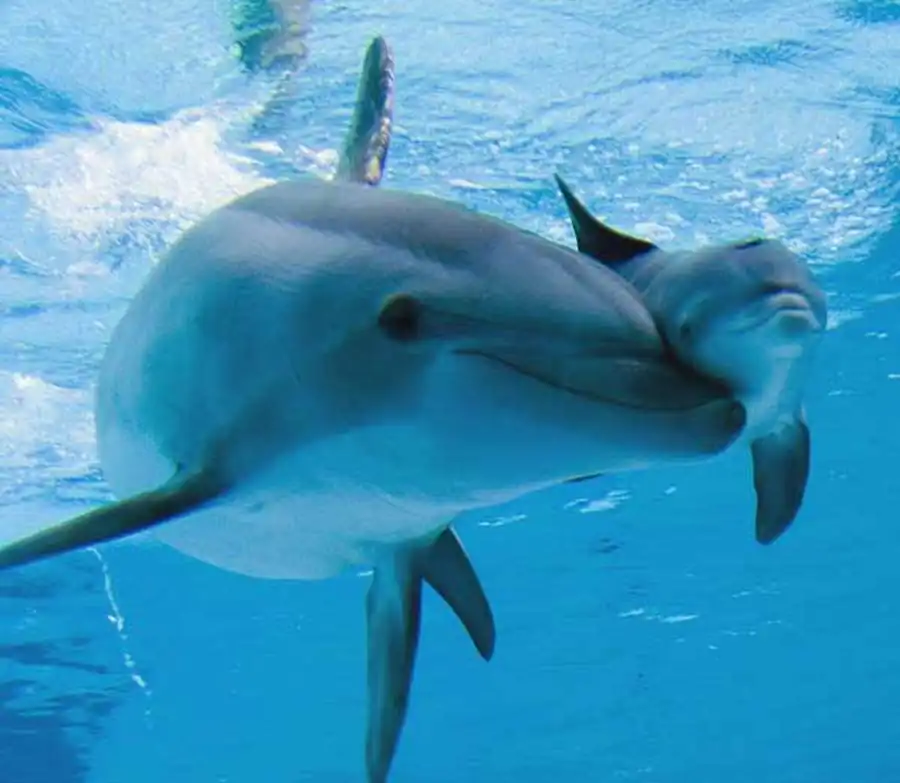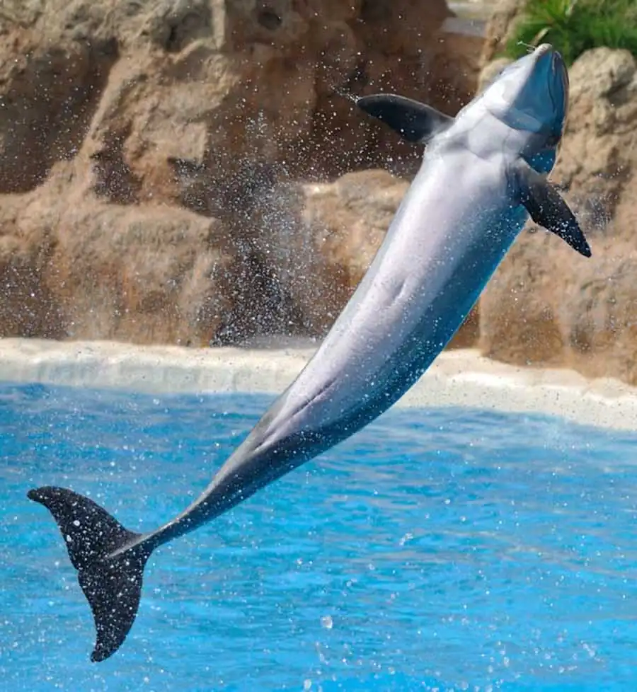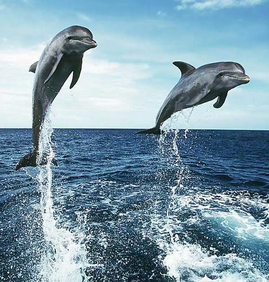 Скорость дельфинов-афалин может достигать 40 км/ч, во время движения эти веселые подвижные создания совершают прыжки на высоту до 5м.