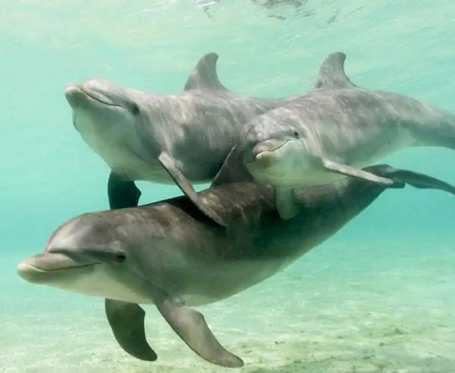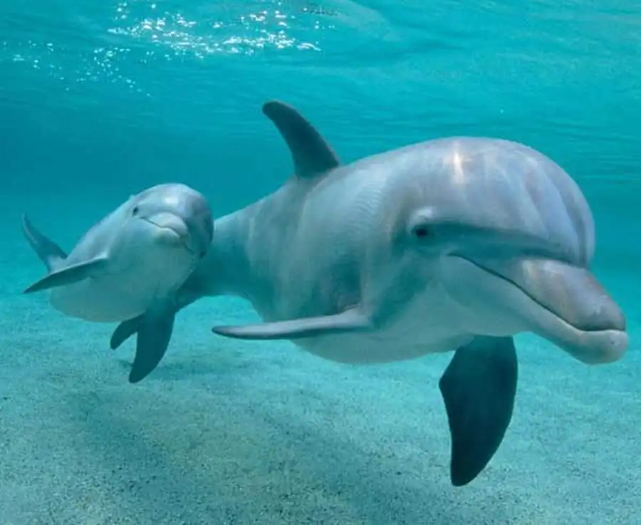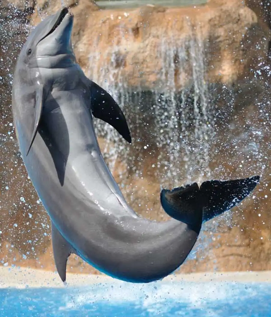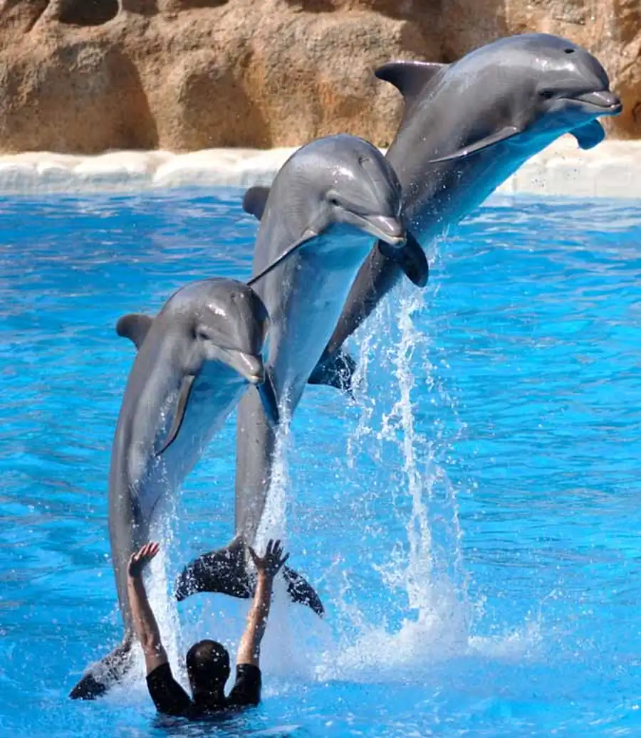 Скорость дельфинов-афалин может достигать 40 км/ч, во время движения эти веселые подвижные создания совершают прыжки на высоту до 5м.