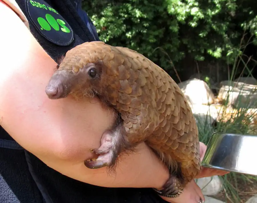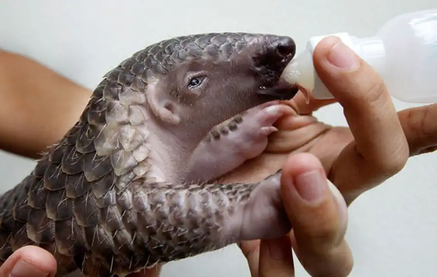 Малыши-панголины рождаются хорошо развитыми, но безволосыми, лишь с мягкими щетинками, которые отвердеют через несколько дней. Как все млекопитающие, детеныши панголинов первый месяц своей жизни питаются материнским молоком, а затем начинают поедать насекомых. Если детенышу грозит опасность, мама быстро спрячет его в клубок из своего собственного тела.