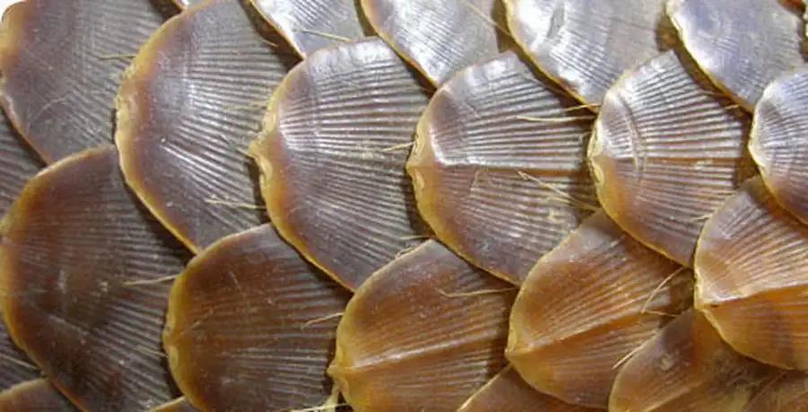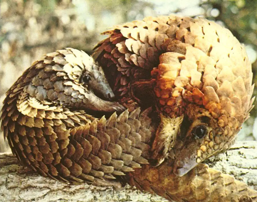 Для панголинов характерен очень и очень длинный хвост, порой превышающий длину тела. Все тело, от середины мордашки и до кончика хвоста, покрыто плотными рядами коричнево-буроватых или желто-серых роговых чешуек.