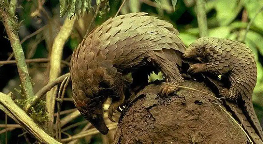 Муравейники для панголинов - не только столовая, но и пункт очистки от паразитов. Если панголину нужно почистить свою шкуру, он садится возле разоренного муравейника и растопыривает свои чешуйки.