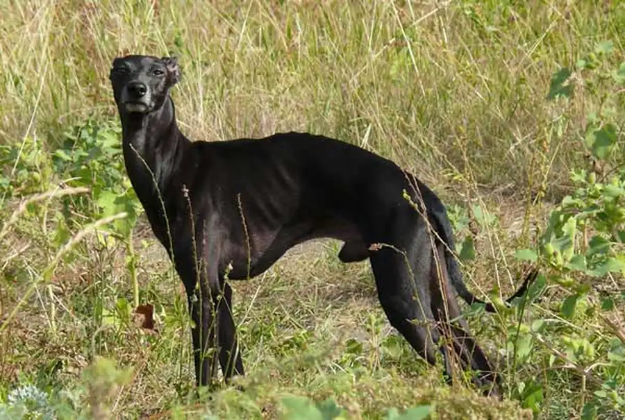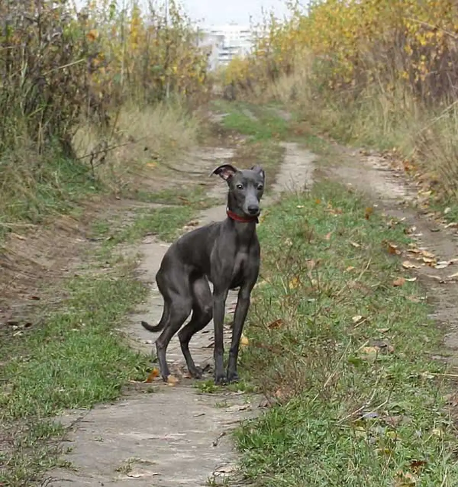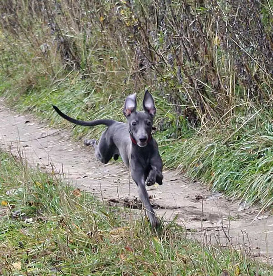 Движения - отрывистые, гармоничные. При галопе собака передвигается очень быстро с резкими прыжками. Кожа у собак довольно тонкая и плотно прилегает к телу. Здоровые собаки являются обладателями блестящей, короткой, гладкой шерстью. Окрас только однотонный от черного до серого с большим количеством оттенков. Могут встречаться небольшие белые отметины на груди и лапах. Высота собаки в холке 32-38 см., при весе не более 5 кг как для самок, так и для самцов.