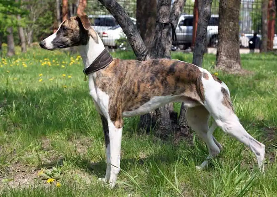 Зубы здоровые, в комплекте; с ножницеобразным прикусом. Глаза крупные и выразительные, темные. Уши очень высоко посажены. Если животное находится в состоянии тревоги, то ее уши приподнимаются на хрящах, а концы становятся повернутыми горизонтально в стороны, т.н. "летящие уши" или "пропеллер". Во время смены зубов у щенков уши часто приподняты на хрящах или их концы, направлены вперед, но в дальнейшем они занимают положение свойственное взрослым собакам.Шея у собак высоко поставлена, с красивым изгибом ("оленья"), ее длина соответствует 4/10 высоты головы в холке.