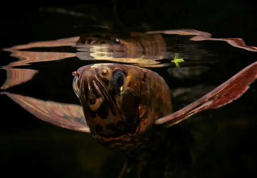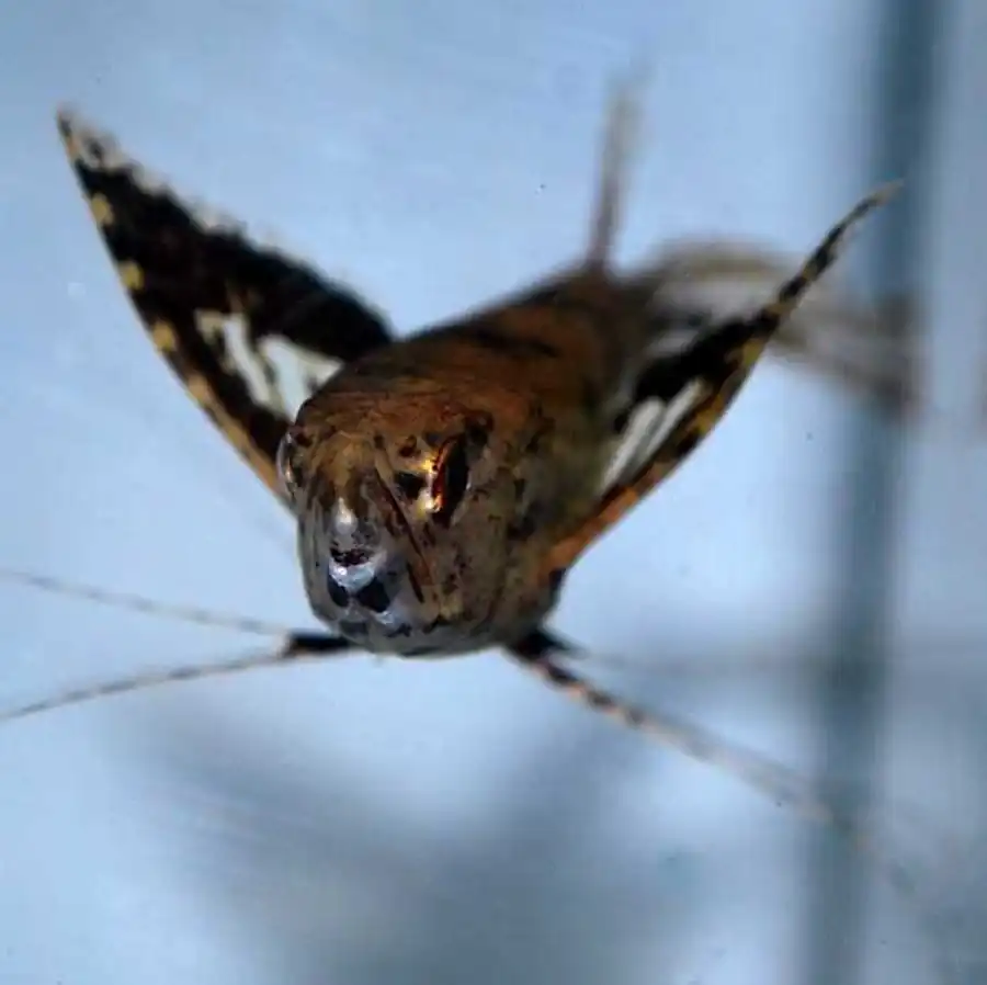 Ловит свою добычу в полете: выпрыгивает из воды и с помощью больших грудных плавников парит по поверхности воды. Такой полет напоминает полет бабочки, именно поэтому рыба и получила свое название. Организм рыбы хорошо приспособлен к таким полетам: васкуляризиованный плавательный пузырь, который позволяет ей дышать кислородом из воздуха у поверхности воды; ноздри, которые выступают в виде маленьких трубочек и плавники-крылья.