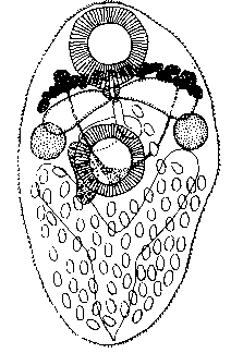 Phaneropsolus orbicularis (Diesing, 1850) из кишечника Nictipithecus trivirgatus (Бразилия, по Braun, 1900)