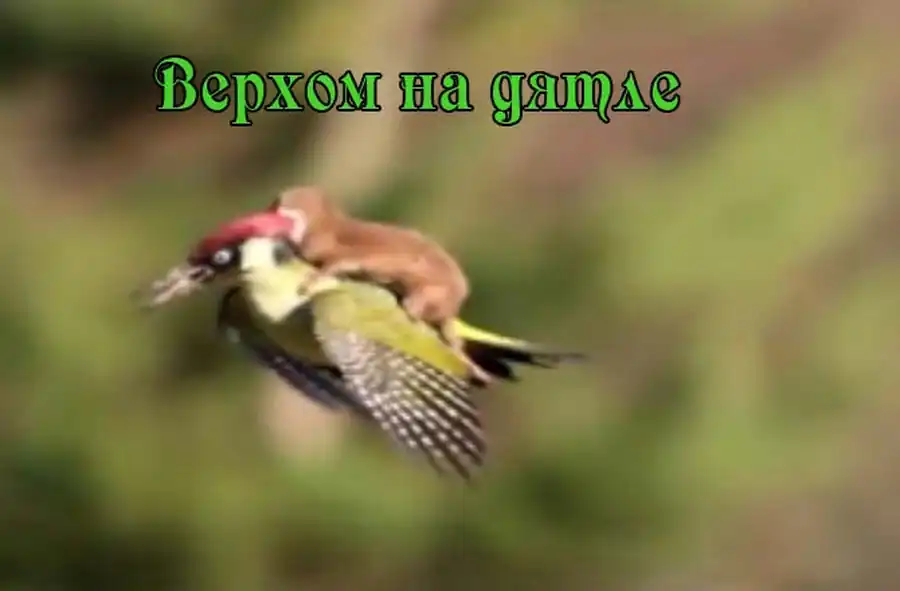 Если вам интересно, дятлу удалось сбросить ласку на траву, а самому благополучно улететь.