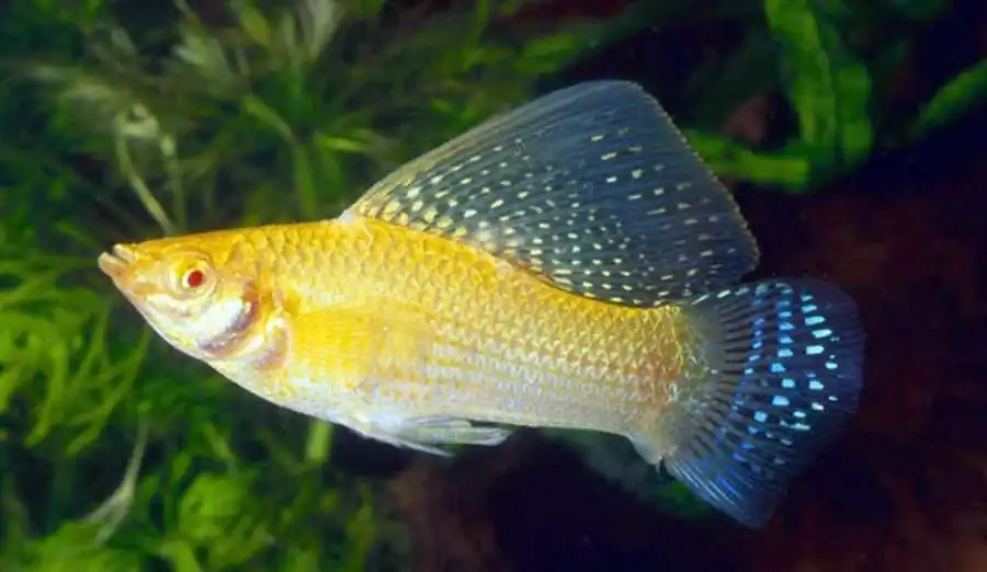 Парусная моллинезия (P. (Mollinesia) velifera) — великолепная величавая рыба с огромным парусом вместо спинного плавника. Самка серая, без паруса, самец серебристо-серый с сетчатым рисунком.
