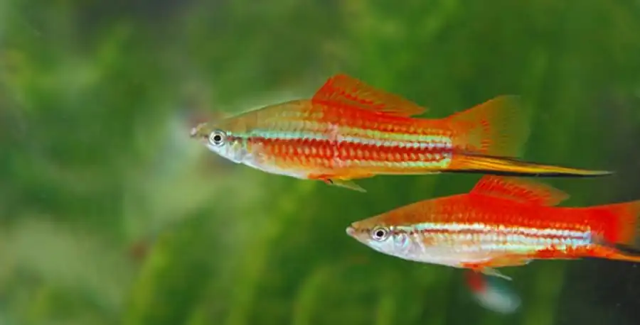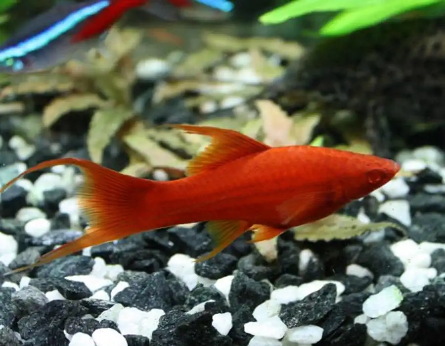 Аквариум может быть и небольшим (длиной около 30—40 см), но в нем рыбы вырастут мелкими, а у форм с удлиненными плавниками последние не достигнут крупных размеров. Он должен быть хорошо засажен растениями, с открытым пространством для плавания. Т= (10? 15) 20— 25°С; dH= (8) 10-25°; рН= 7,0-7,5. Рыбы любят свежую воду, поэтому она должна регулярно подмениваться. Выпрыгивают из воды, аквариум следует накрывать. При плохом самочувствии рыб (сжатие плавников, появление белого налета и т. д.) следует повысить Т на 2-4°С, воду можно слегка подсолить (1-3 чайных ложки соли на 10 л воды). Нормальной длины рыбы достигают в возрасте около полугода, хотя размножаться, особенно самки, могут и раньше. При разведении соотношение полов может быть любым, но желательно (а при селекции необходимо), чтобы самок было в 2—3 раза больше, чем самцов. Условия те же, что и при содержании, но Т=23—27°С. Плодовитость в зависимости от размеров самки — 30—200 мальков, у крупных самок, выращенных в больших аквариумах, отмечалось в помете более 400 мальков. Производители поедают потомство, поэтому самку с располневшим брюшком (а у светлых форм, кроме того, с потемневшим пятном зрелости) лучше поместить в сетчатый или иной отсадник или перенести в отдельный аквариум. Интервалы между метками составляют 4—6 недель. Мальков выкармливают науплиями рачков, нематодами, микромином, резаными олигохетами и т. п.