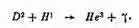 Этап второй: дейтерий, реагируя, или, точнее, как бы «сливаясь», с новым протоном, образуют изотоп гелия Не3 и гамма-квант у, то есть элементарно малую порцию электромагнитного излучения. Символически запишем: