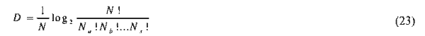 где N— величина суммарного обилия для всей группировки (количество особей, масса), Na, Nb... Nx - частные величины обилия отдельных компонентов, D - разнообразие сообщества в битах. D тем больше, чем большее число видов (или компонентов иного ранга) в исследуемой группировке имеет высокое обилие, т.е. в полидоминантных сообществах. D будет стремиться к нулю при приближении N к Na, т.е. с увеличением степени монодоминантности. Безусловно, величину численности в этой формуле можно заменять любым другим показателем обилия или энергетических потенций - массой, интенсивностью метаболизма, что абсолютно необходимо при анализе разноразмерных совокупностей видов. В нашей литературе уже опубликованы результаты расчетов информационных индексов разнообразия по величинам массы (А. Гиляров, 1969; Кожова, 1969; Ананьева, 1971).