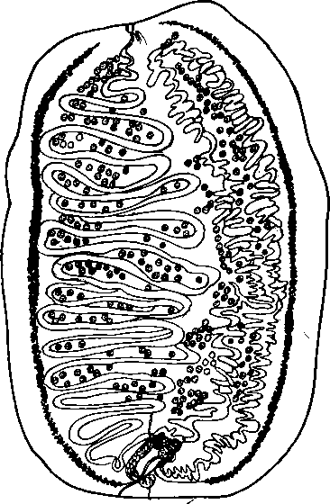 Мужское половое отверстие находится на заднем конце тела несколько дорсальнее впячивания с эмбриональными крючьями. Яичник глубоко лопастный, асимметричный. Семеприемник сравнительно небольшой. Идущее от него влагалище перекрещивается с мужскими половыми протоками чаще в области конечной части семяпровода, реже в области семяизвергательного канала за половым бульбусом. Желточные фолликулы в виде узких полос проходят по бокам тела; позади яичника желточные протоки каждой стороны соединяются в непарный восходящий поток, идущий к оотипу.