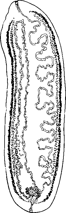 Желточные фолликулы группируются в узкие полосы, проходящие по бокам тела, кнаружи от семенников.