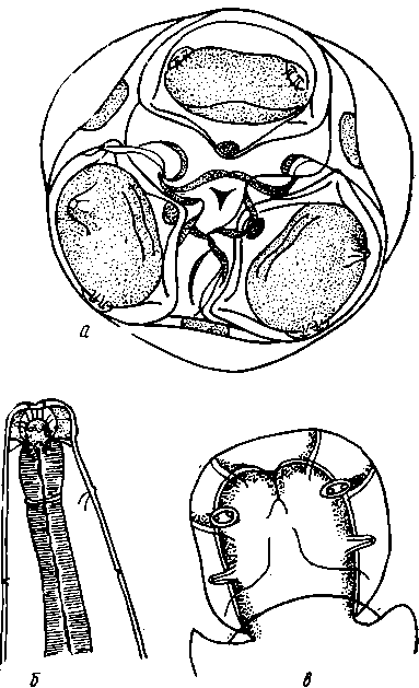 а — головной конец апикэльно; б — головной конец дорсально; в — дорсальная губа