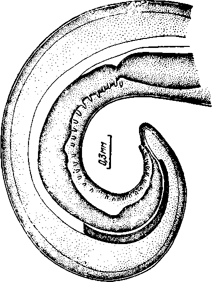 Contracaecum bidentatum (Linstow, 1899) от Acipenser stellatus (P.) Черного моря. Хвостовой конец самца. Оригинал