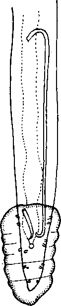 Dogielina inexpectata (Dogiel et Bychowsky, 1939) (по Догелю, Быховскому, 1939). Хвостовой конец самца