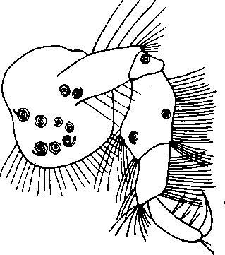 Самец. Тело цилиндрической формы, несколько расширенное в средней части, оба конца его закруглены.