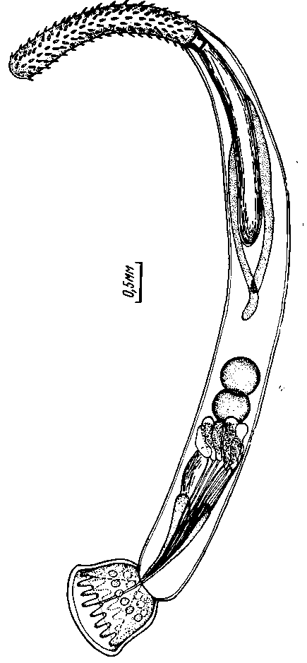 Leptorhynchoides plagicephalus (Westrumb, 1821) от Acipenser stellatus (P.) Каспийского моря. Общий вид самки. Оригинал