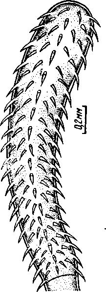 Лепторинхоидес инвазирует как взрослых, так и молодь осетровых рыб (Иванов, 1966а, 1968). Наши исследования на Каспии показали, что севрюга заражена лепторинхоидесом выше, чем осетр. Высокий процент инвазии этим скребнем мы наблюдали у шипа, исследованного в том же районе: все 11 экз. вскрытых рыб были заражены, при сравнительно высокой интенсивности инвазии от 2 до 42 экз. на рыбу. Более высокую инвазию севрюги по сравнению с осетром отмечают Ю. С. Саидов (1956а), исследовавший осетровых в районе наших работ, и В. П. Иванов (1966а) для рыб Волги.
