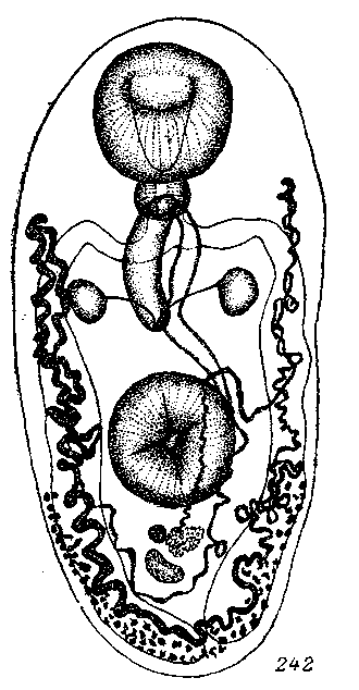 Описание вида (по Braun, 1901). Тело овальное, спинная поверхность сильно выпуклая, брюшная — ровная; длина тела 2.8 мм, наибольшая ширина 1.5 мм. Ротовая присоска лежит терминально, ротовое отверстие — субтерминально на брюшной поверхности; присасывательный орган 0.6 мм длины и 0.666 мм ширины. Позади средины тела находится брюшная присоска, 0.666 мм длины и 0.7мм ширины. Почти шаровидный фаринкс, 0.2 мм в разрезе, следует непосредственно за ротовой присоской. Позади фаринкса происходит раздвоение кишечника. Автору не удалось установить задний конец кишечных стволов, идущих справа в сторону, а затем назад.