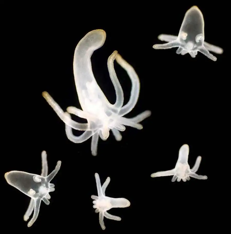 1. Редукция скелетных образований. Все планктические организмы лишены тяжелого скелета и по этому признаку резко отличаются от близких форм, ведущих донный образ жизни. Планктические диатомеи обладают более легким скелетом, по сравнению с донными видами, створки которых сильнее пропитаны кремнеземом и значительно тяжелее. У пелагических видов ветвистоусых раков хитиновая раковина значительно тоньше и нежнее, чем у видов, обитающих на дне. Пелагические высшие раки (Amphipoda, Euphausiacea, Decapoda) в противоположность донным видам никогда не обладают тяжелым, пропитанным известью панцырем. То же наблюдается и у морских крылоногих (Pteropoda) и киленогих (Heteropoda) моллюсков, характеризующихся или полным отсутствием раковины, или очень слабым ее развитием.